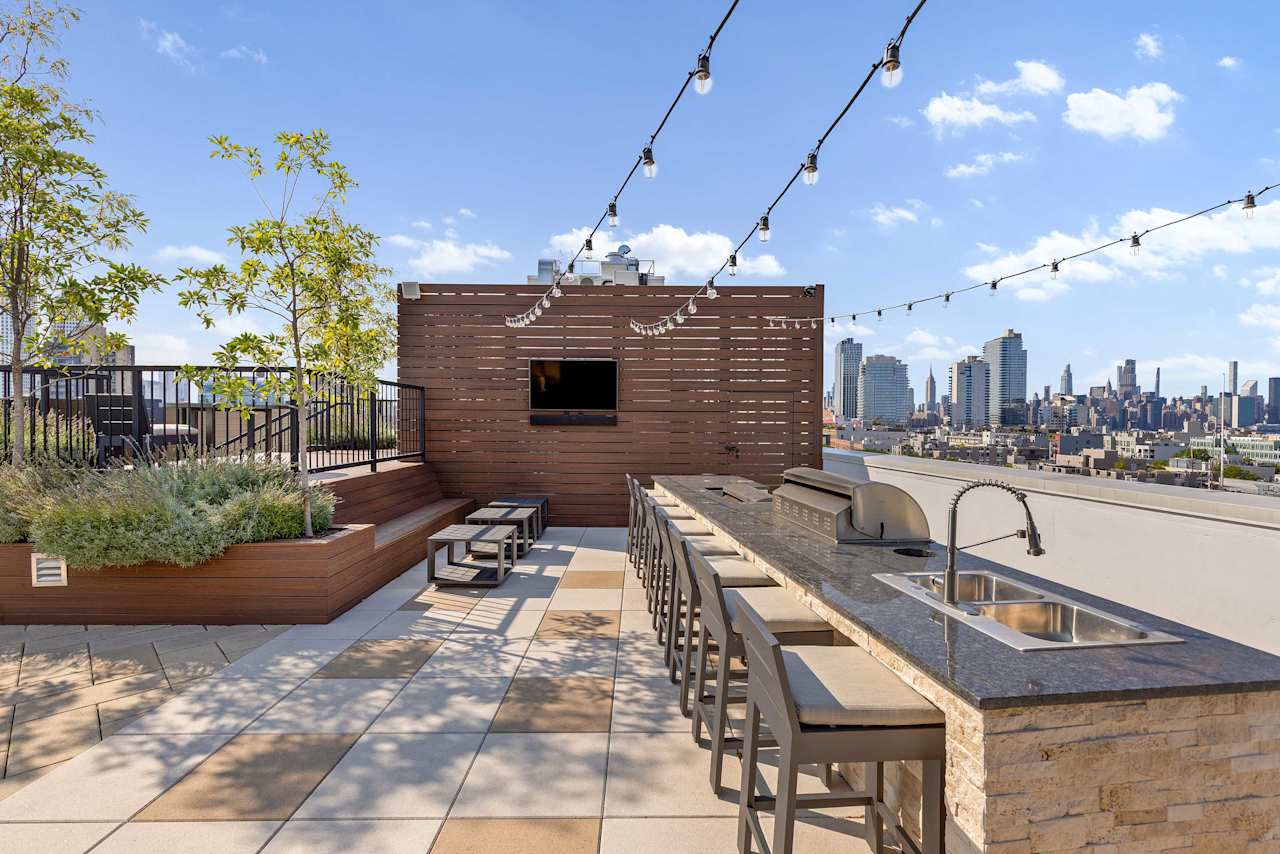 Elevate your dining experience in our rooftop retreat, complete with BBQ grills and an outdoor kitchen, perfect for relaxing and entertaining while surrounded by breathtaking city views of Williamsburg and Manhattan.